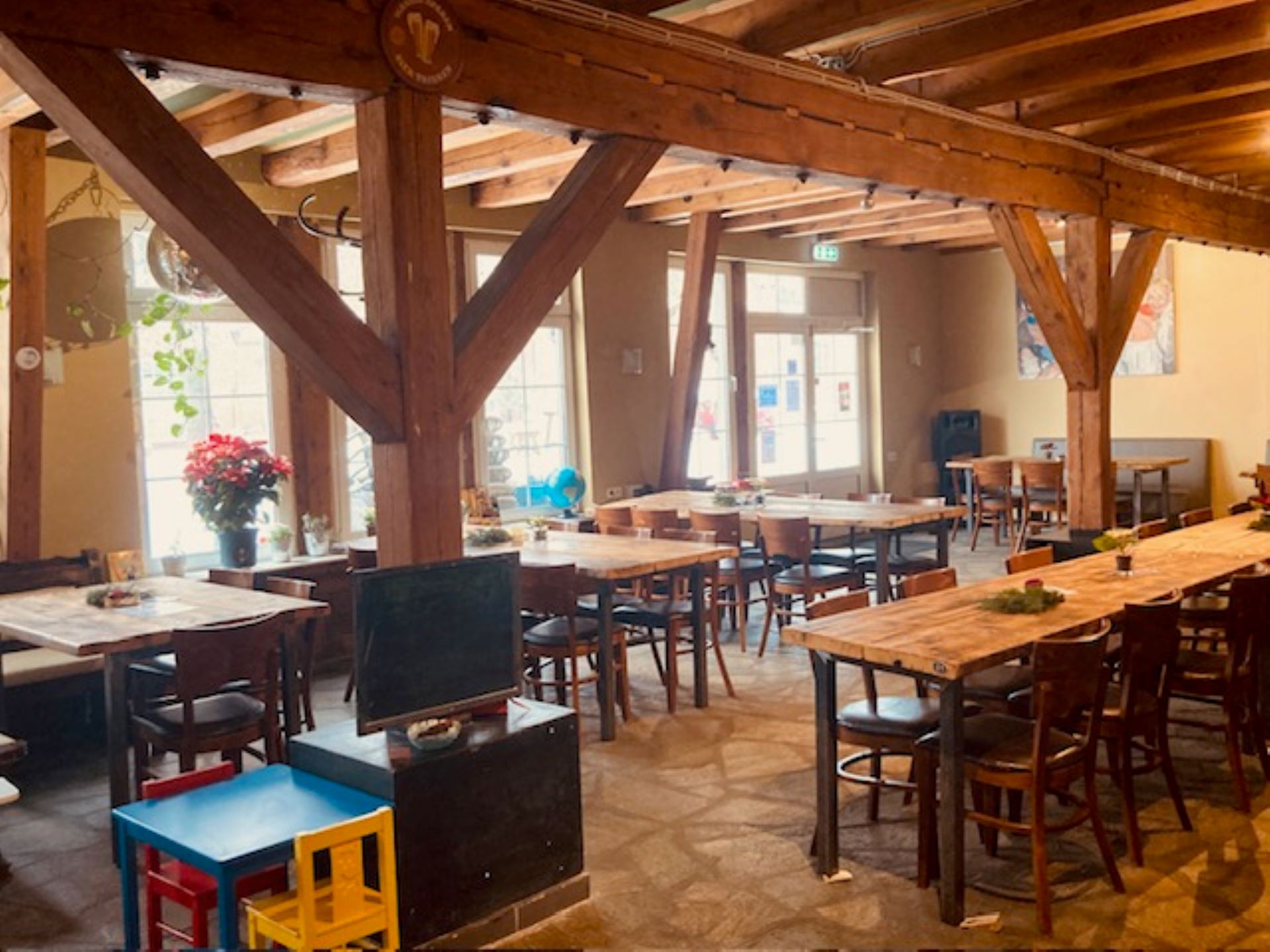 Der große, gemütliche Gastraum der KATI Hausbrauerei erwartet euch mit einer einladenden Atmosphäre, die zum Verweilen einlädt. Das charmante Holz-Fachwerk, die rustikalen Holztische und der große Tresen schaffen einen urigen Raum, in dem sich Groß und Klein wohlfühlen können.